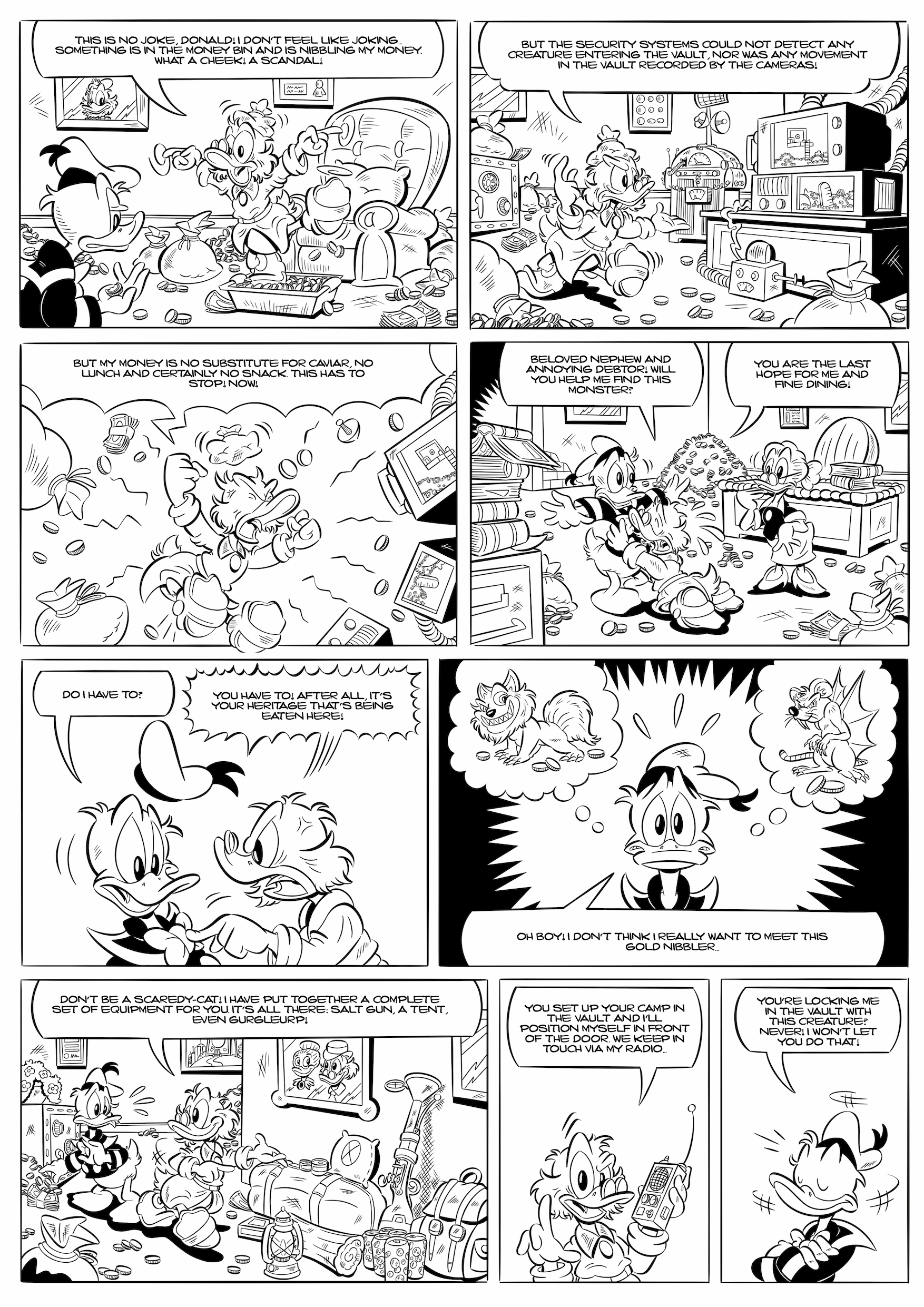 Content: Scrooge discovers a bitten coin in the money bin. Together with Donald, he wants to find out the cause and meets an unexpected visitor.